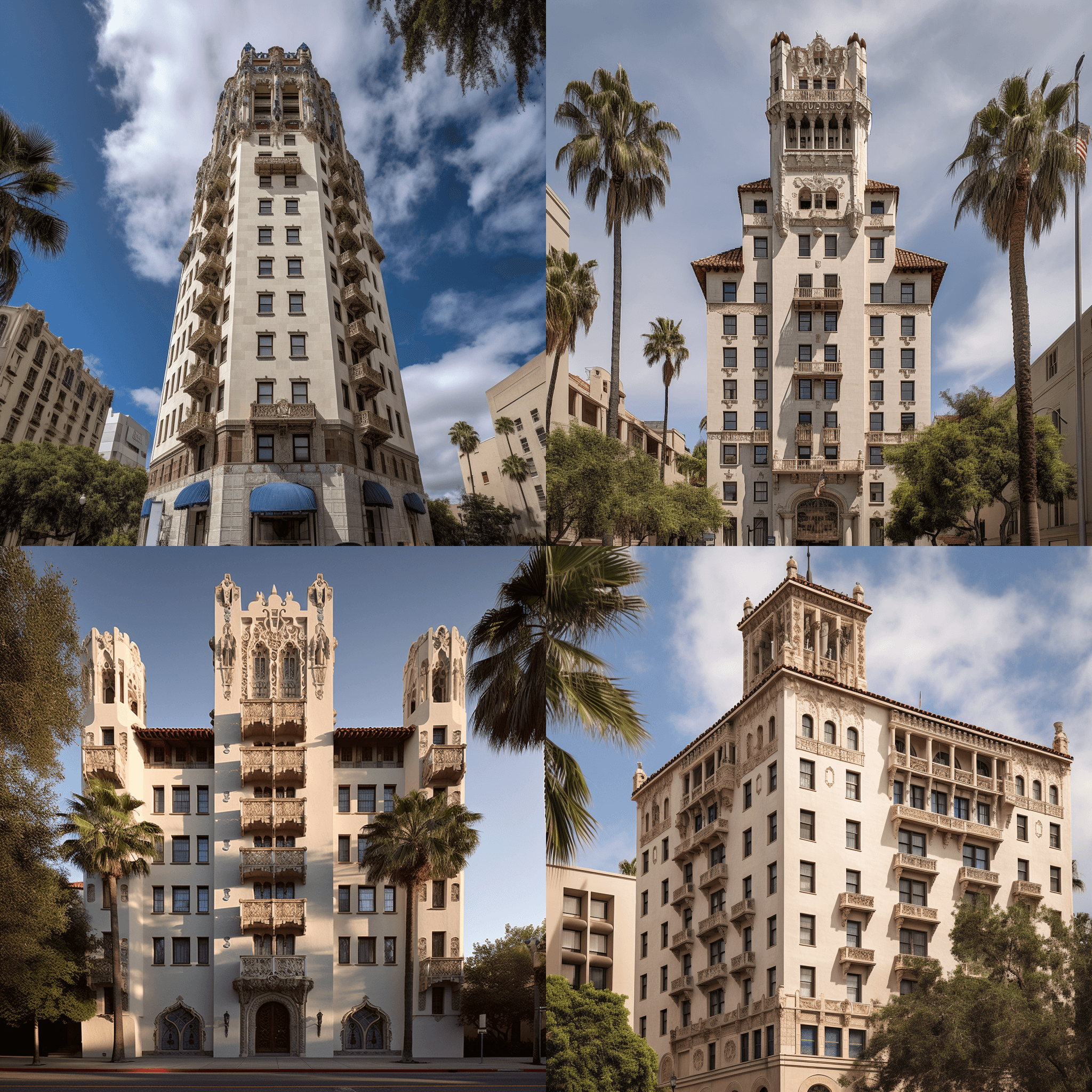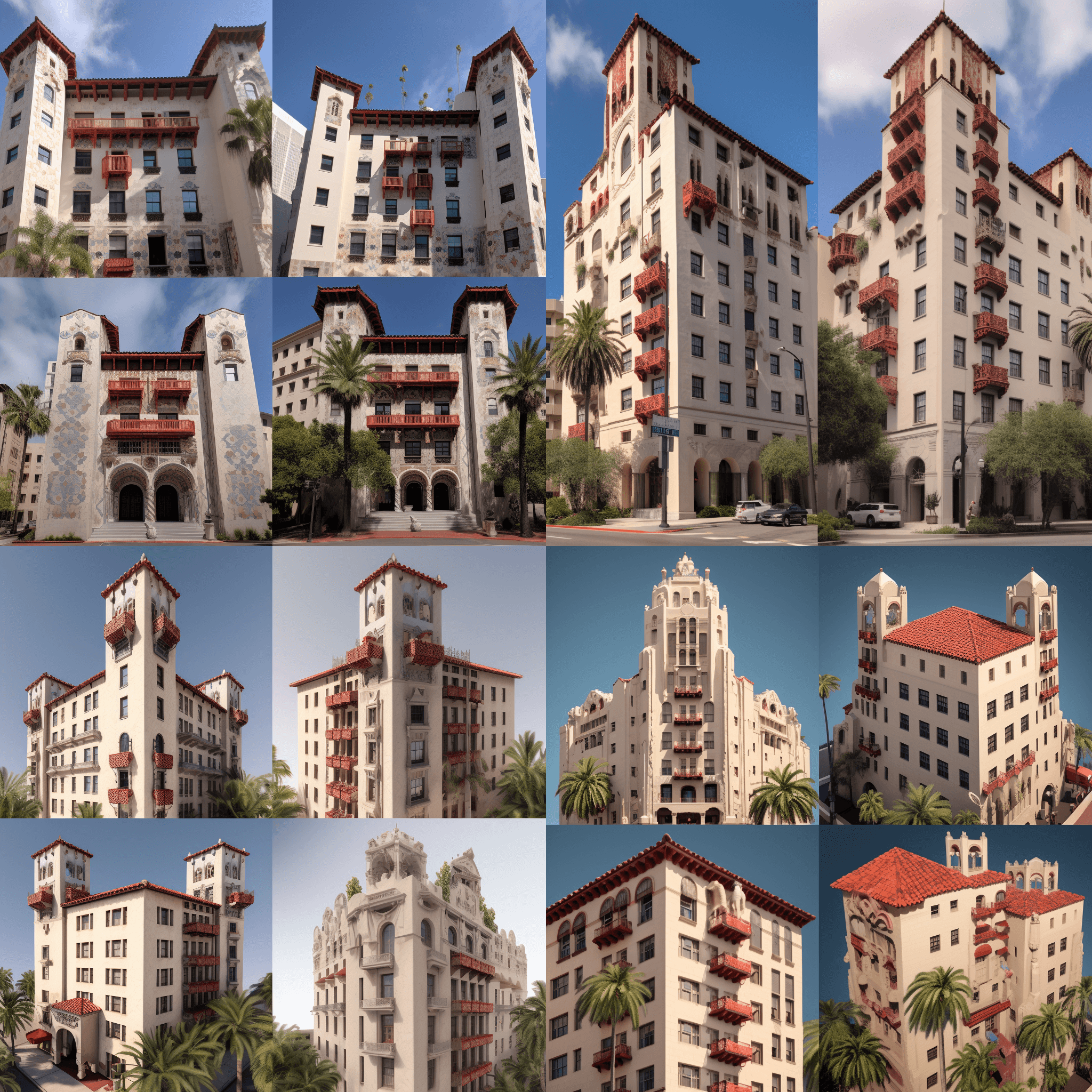 Prompt 3: “A building in the architectural style of spanish colonial revival, but with 50 floors”